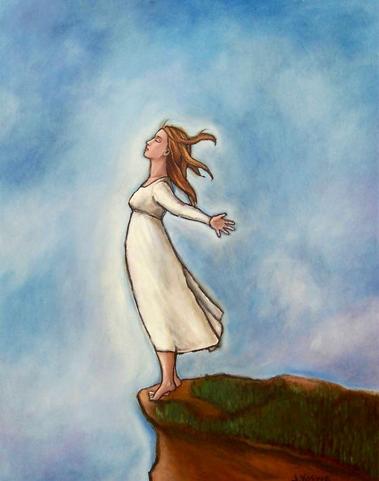 I painted this several months after the passing of my mom. I was reaching the stage of acceptance in the grieving process and was beginning to trust that time would heal and I would be ok if I continue to "push" forward. When I shared this painting with family and friends many were concerned that I was thinking of jumping off a cliff. It was quite the opposite. I was finding peace.